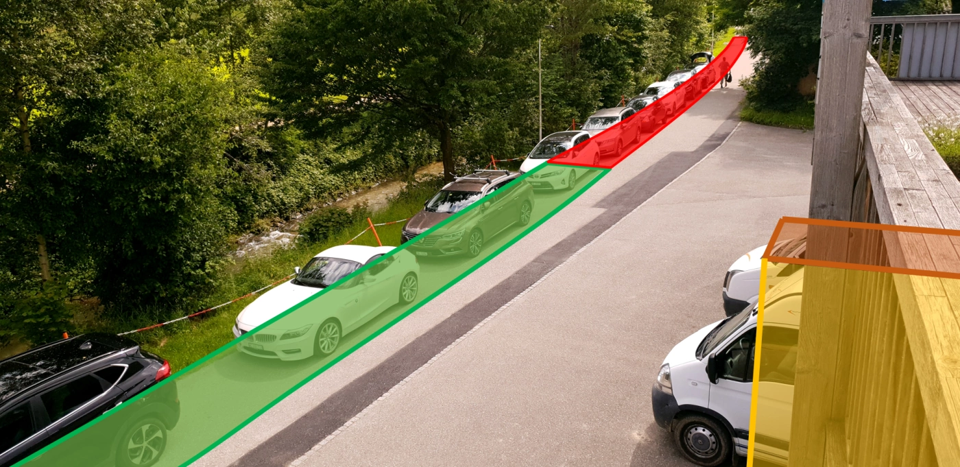 - Samstag und Sonntag parkieren auch im roten Bereich (bitte ganz auf der Flusseite, damit die Autos noch immer passieren können)