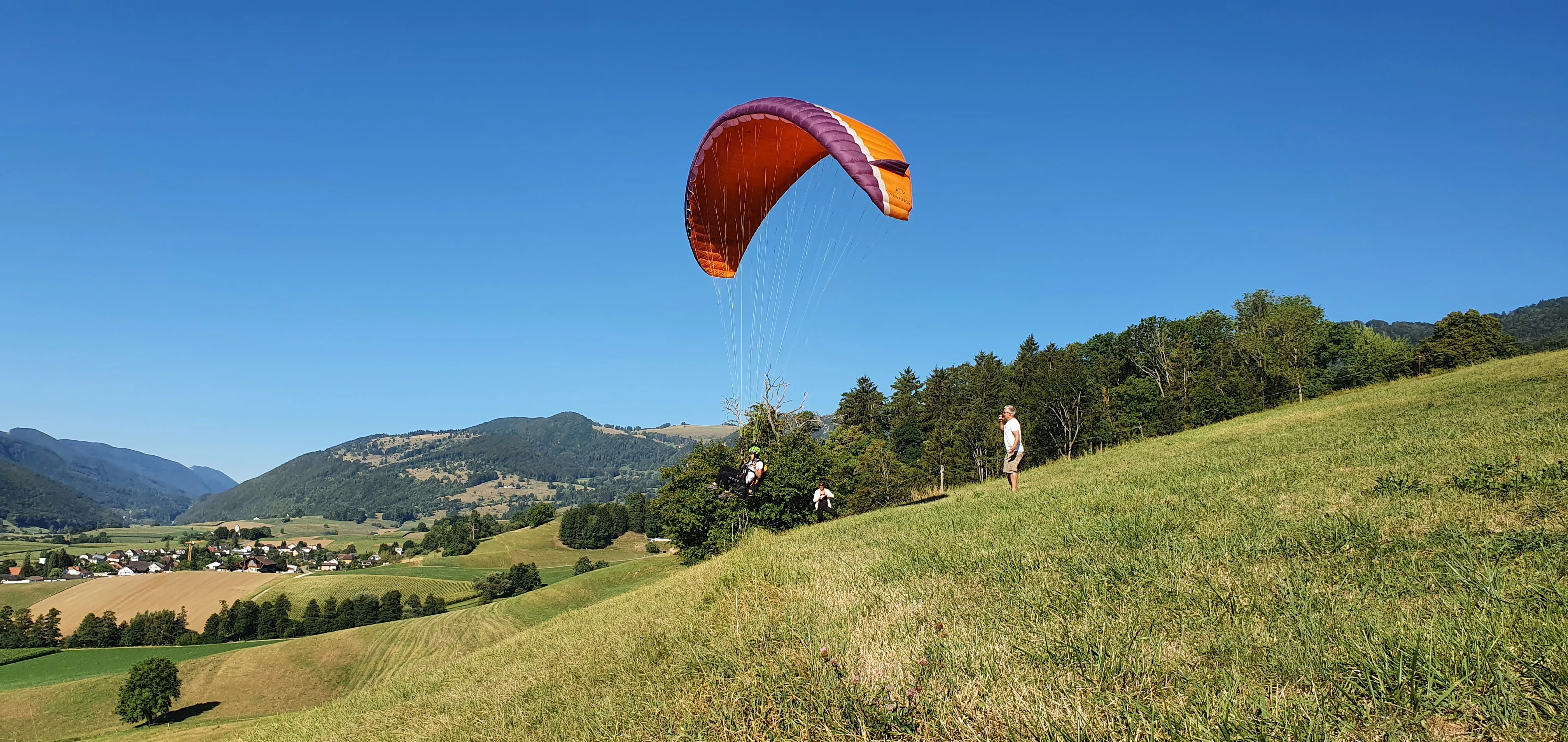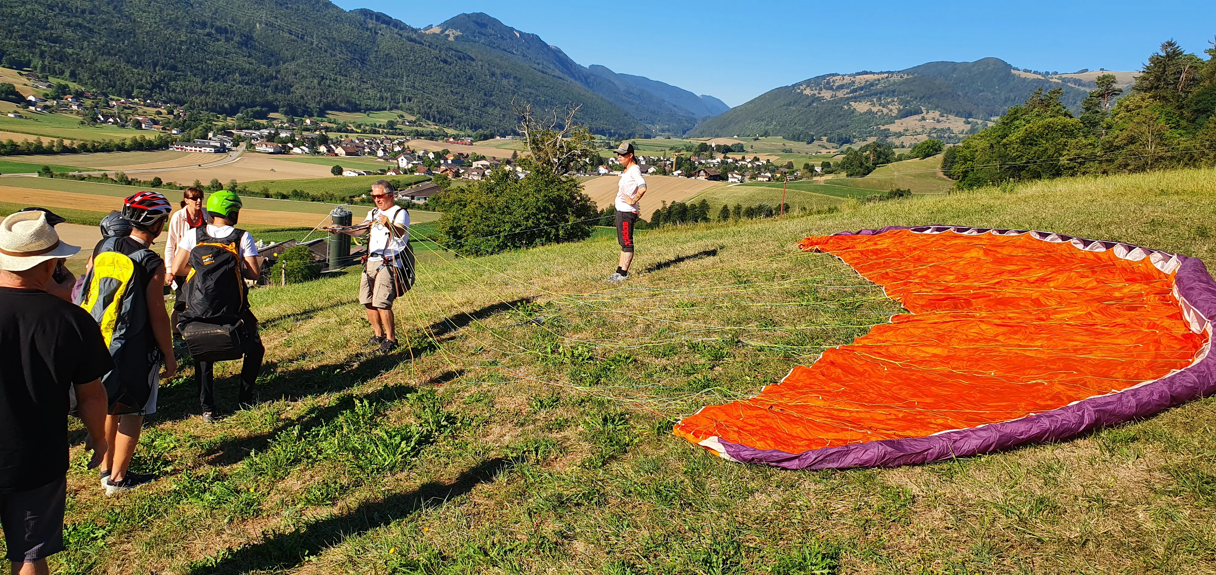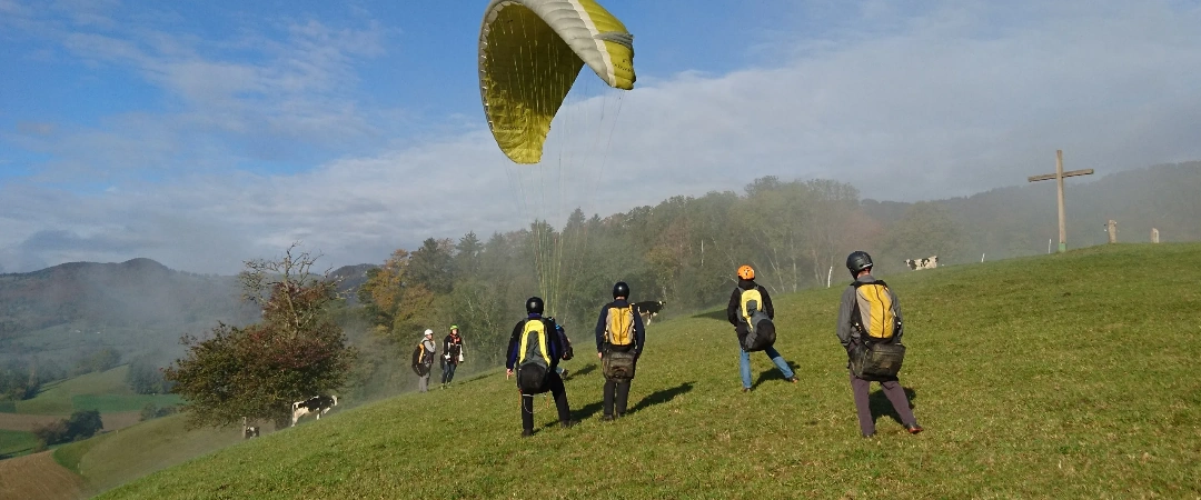 Unser Gruppen-, Team- oder Firmenevent ist optimal für Gruppegrösse von 6-12 Personen. Dabei bieten wir dir einen Schnuppertag am Übungshang an, bei dem alle Teilnehmer bereits selber abheben und den Gleitschirm fliegen werden. Fliegen ist ein uralter Menschheitstraum. Der Schnuppertag soll dir das Gefühl des Abhebens vermitteln. Ohne grossen Aufwand und ohne Verpflichtung, einfach mal ausprobieren wie sich das Fliegen anfühlt.